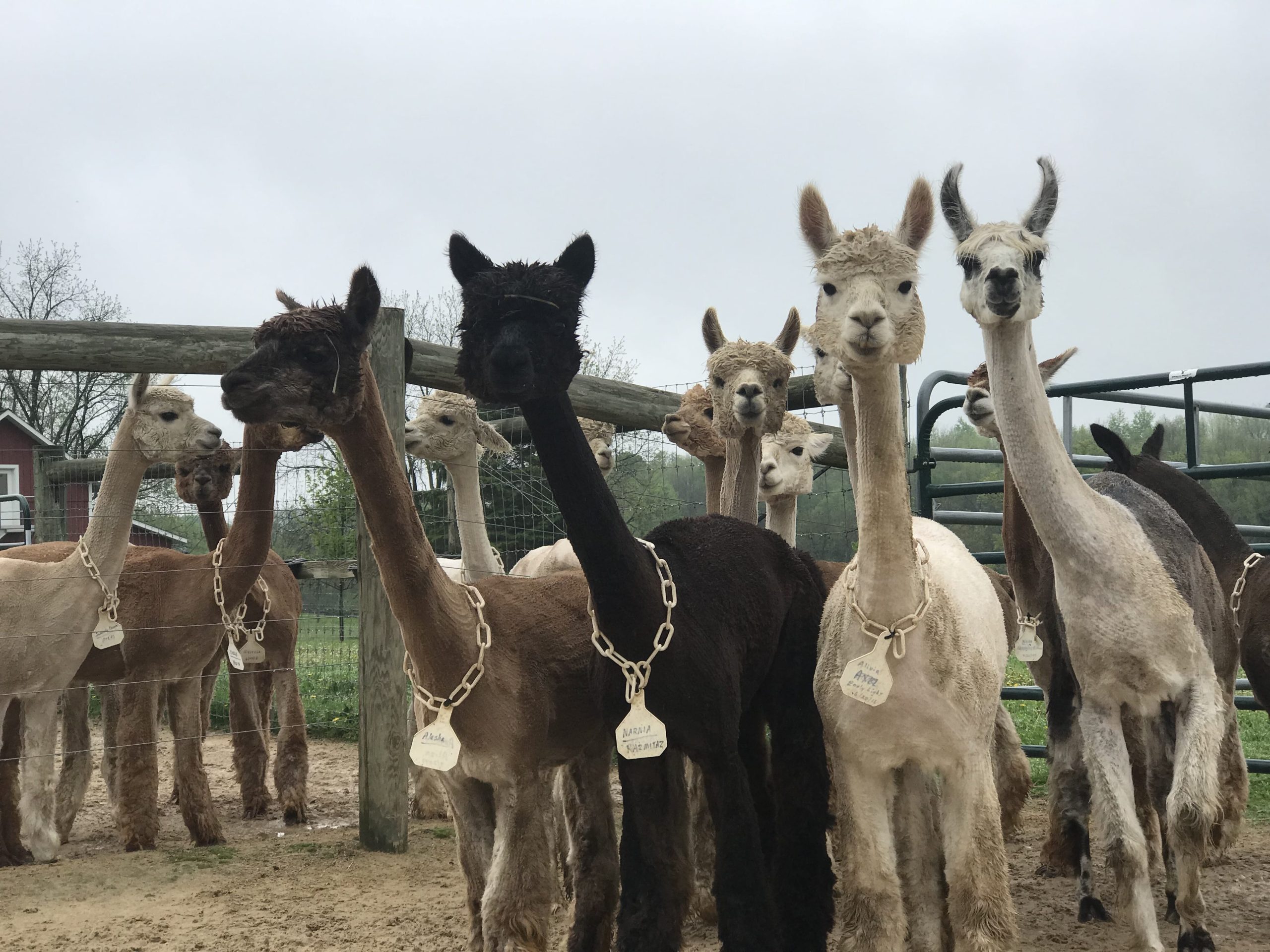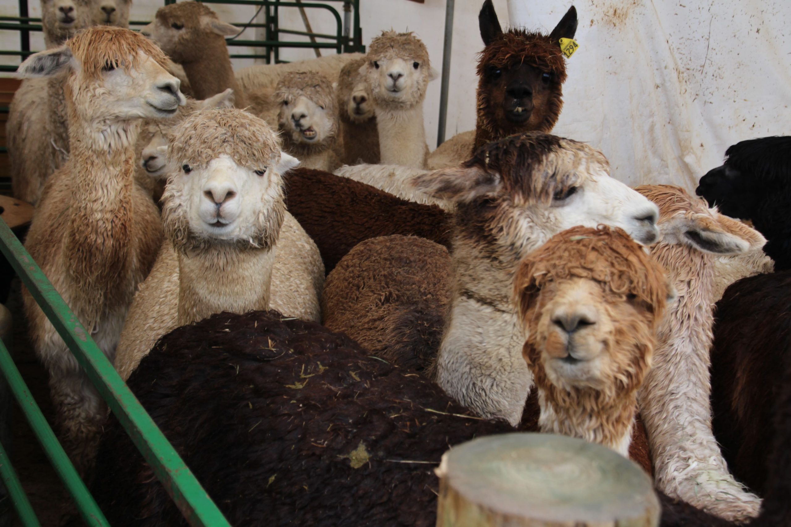 Wet Alpacas? No Problem. Yes, we can shear them. While we can shear wet alpacas, it can ruin a year's harvest of fiber. If the alpacas are wet when shorn, you'll need to keep the bags of fiber open to air dry.